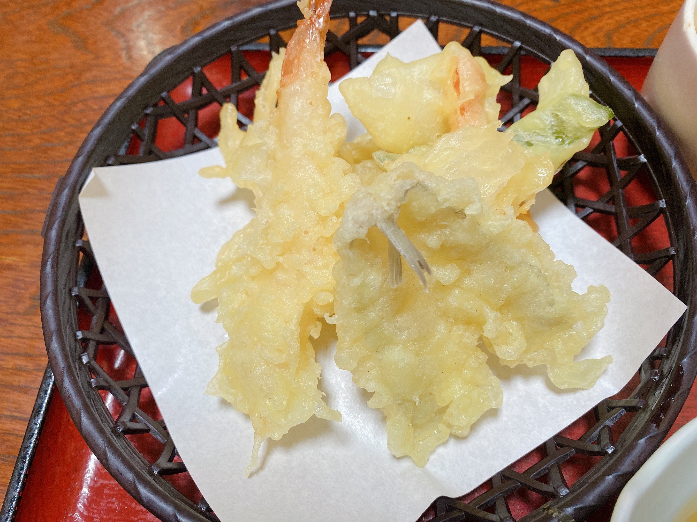 天ぷらもサクサク。キスとエビとかき揚げでした。