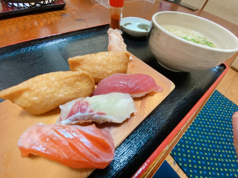 こちらは、寿司セット。うどんも一玉分の量でミニとかじゃないサイズ。