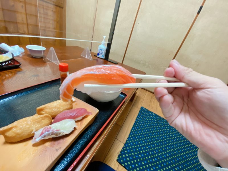マグロ、タイ、サーモン、いなりって、みんなが大好きなお寿司のチョイス。
