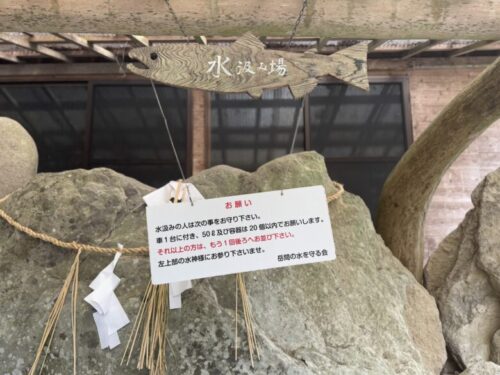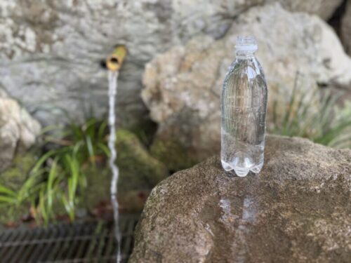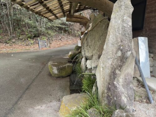 岩の中から水が出ているように作られている不思議なこちら。一回100円をお願いされておりますが、たくさん利用される方は多めに、などのご協力をよろしくお願い致します。