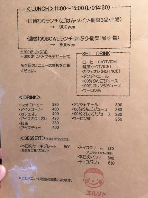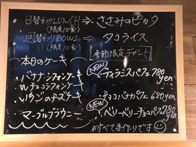 ランチやデザートの日替わりメニューは、店内の黒板に記載されています。