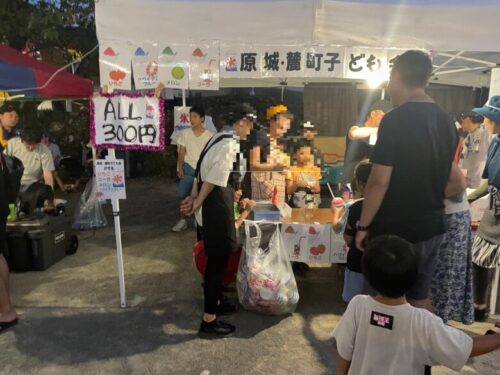 地元の子ども会によるかき氷やおかしのつかみ取りもあって、手作り感のある地域の夏祭りといった印象です。