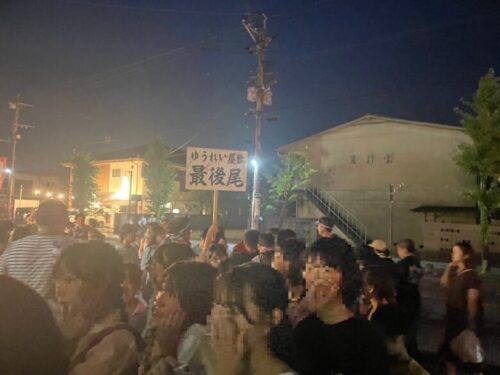 暗くなってくると、ゆうれい祭りに並ぶ人たちの列も、車道に出そうなほどの長い行列になっていてびっくり!