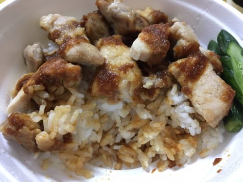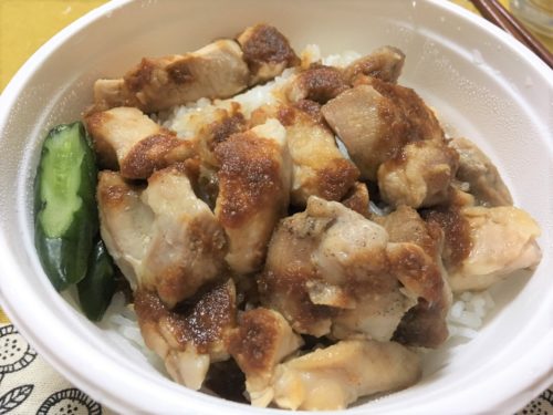 こちらが秘伝のたれ丼です。鶏肉がごろごろ入っていて、ボリュームたっぷり!食べてみると、確かにたれがおいしい!甘辛くてスパイシーで、鶏肉との相性抜群です!