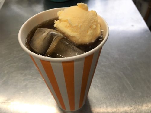 ドリンク類もあり、お店で豆から挽くコーヒーや、チョコミルクなど充実していますが、なんといっても珍しいのがルートビアフロート!