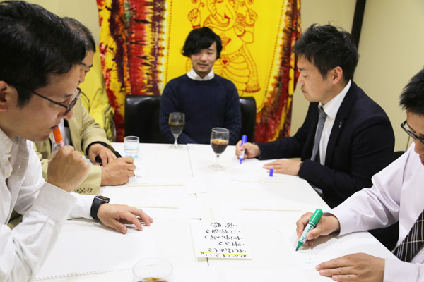 テーブルの前に、こちらが準備した10の質問を並べまして、皆さんそれぞれが引いたテーマについて話し合っていただきます。内容はまだ伏せていて、引いたら正直に話していただきます!