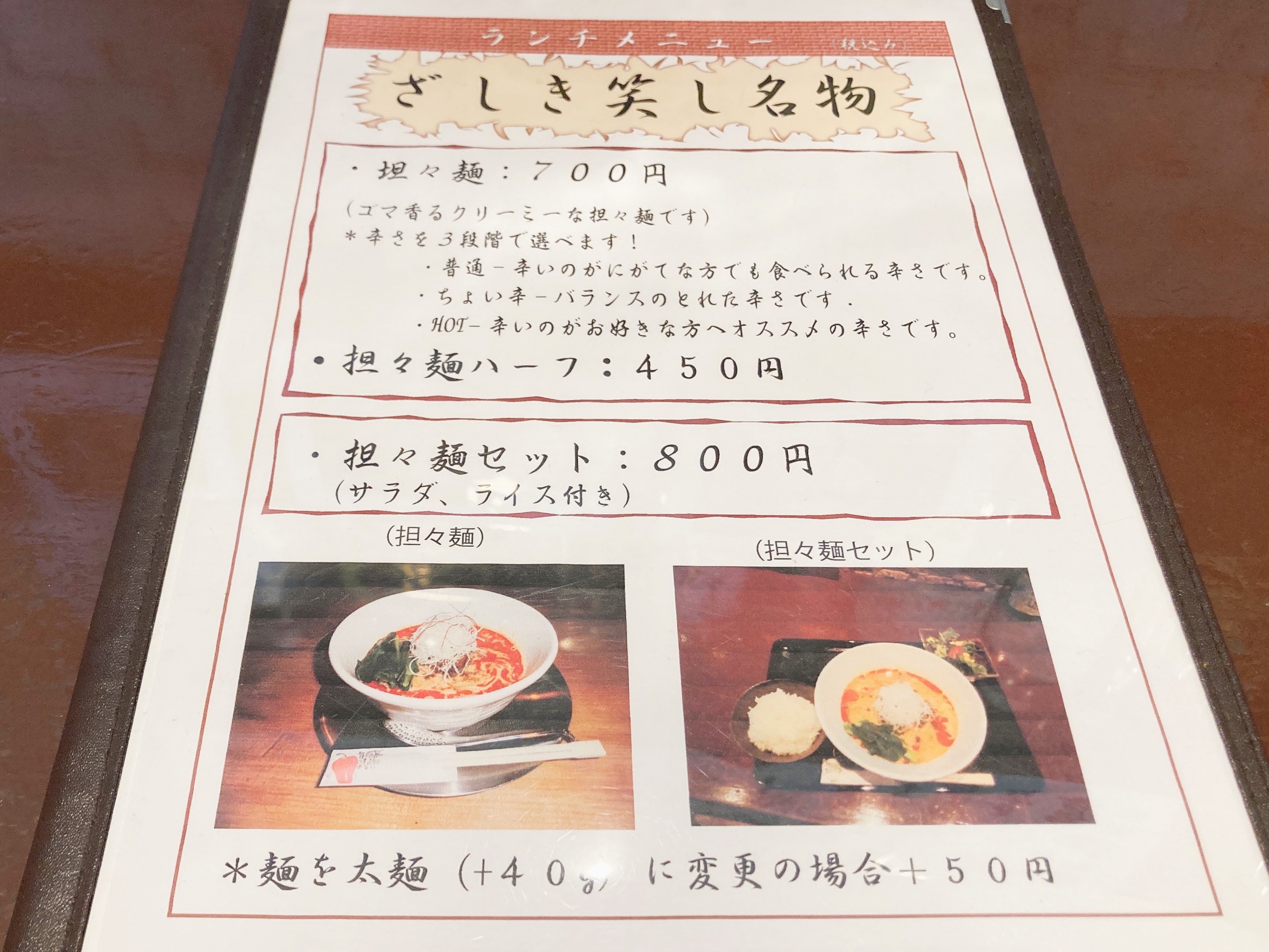 着席してランチメニューを見ると圧倒的な担々麺推し!