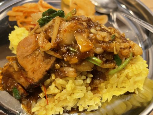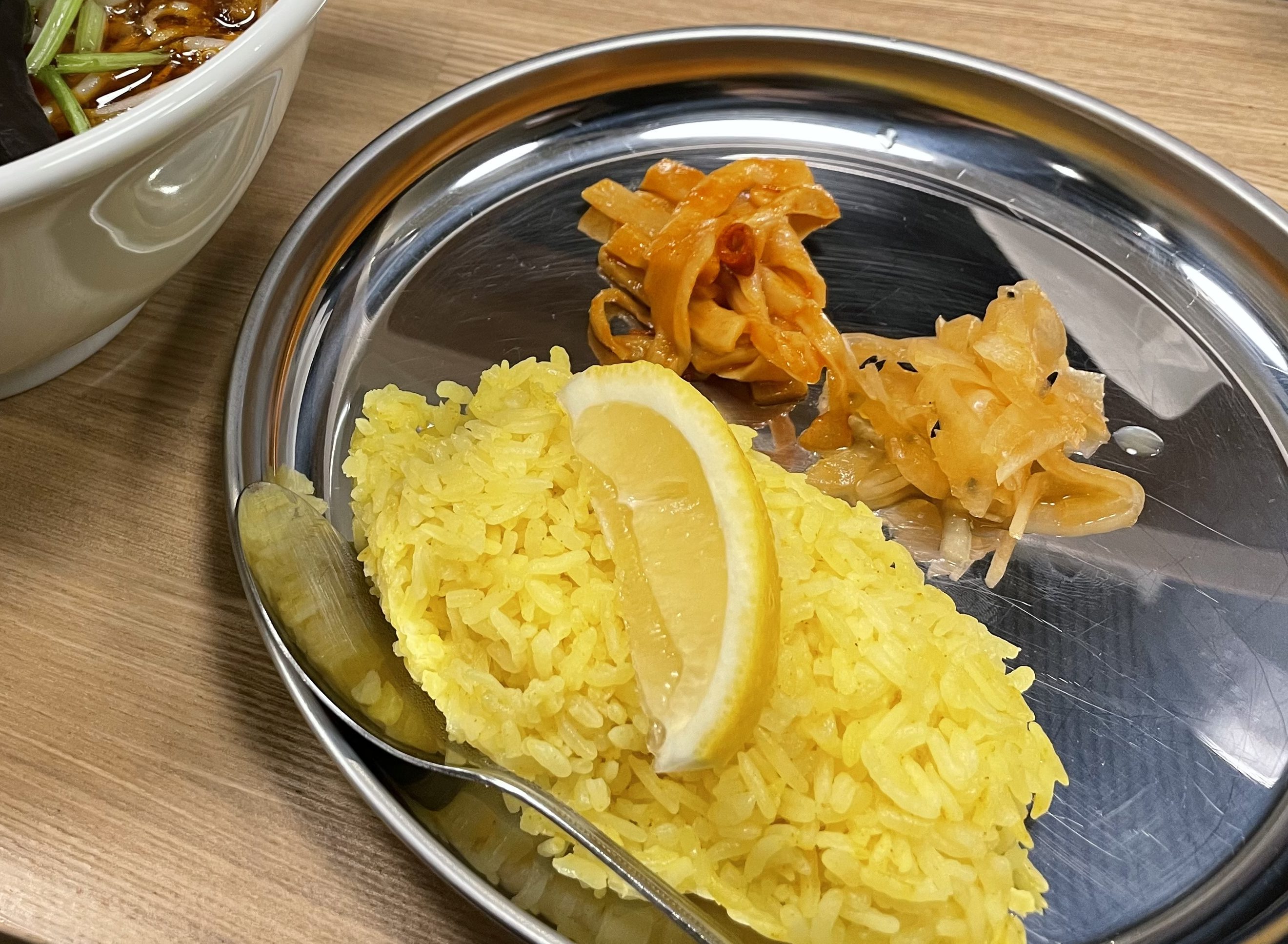 ライスの付け合わせも美味い。左がメンマ辛味漬けと右が玉ねぎ辛ピクルス??これだけでも買って帰りたい。