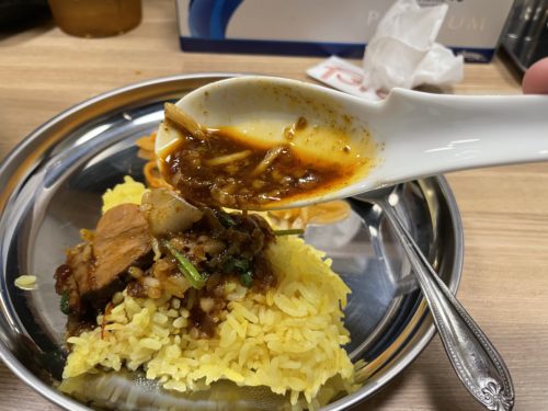 スパイスラーメンという表現はバッチリで、ホントにスパイスを堪能するといった味わい。スパイス強めのカレーが好きな人には、たまらんです。