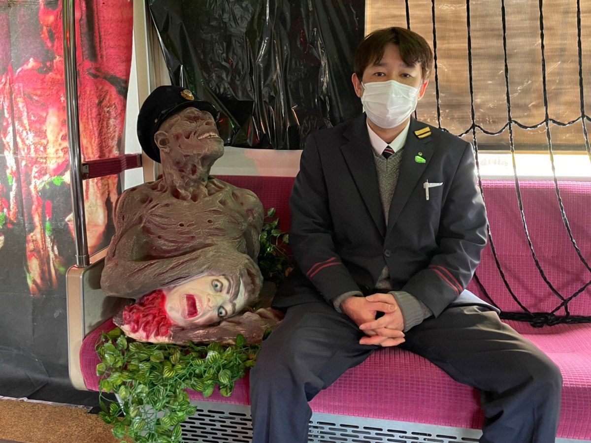 熊本電鉄 一戸文彰さん (横にいるのはゾンビ)
