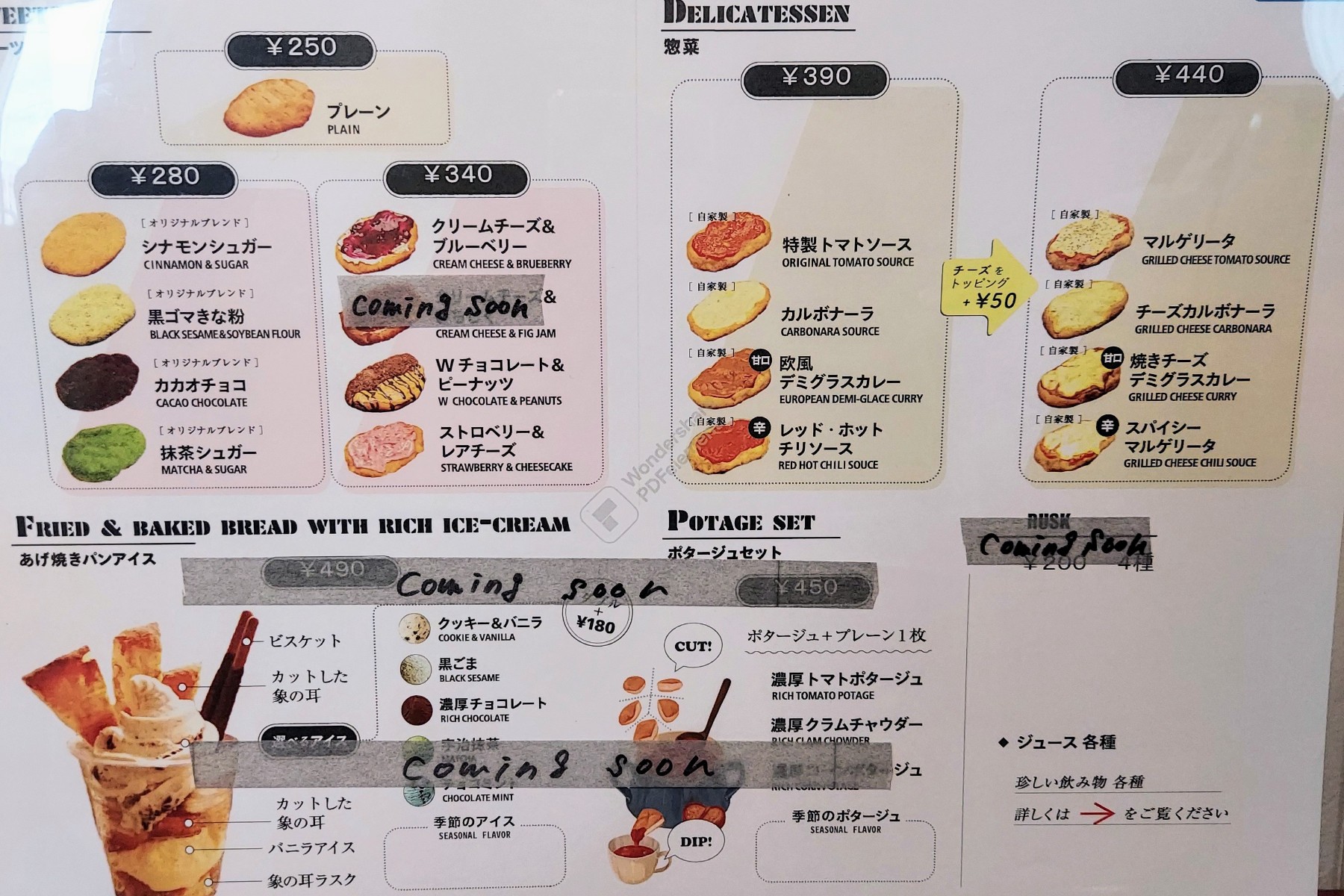 メニューを見ると色んなバリエーションの「象の耳」が!