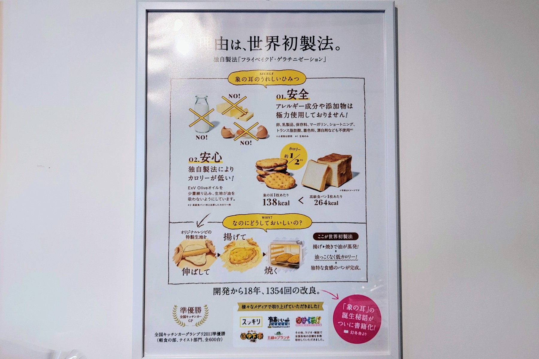 少量のオリーブオイルを練りこむことで生地が油を吸わず、象の耳1枚と食パン1枚を比較した時に、半分ほどのカロリーしかないという奇跡!