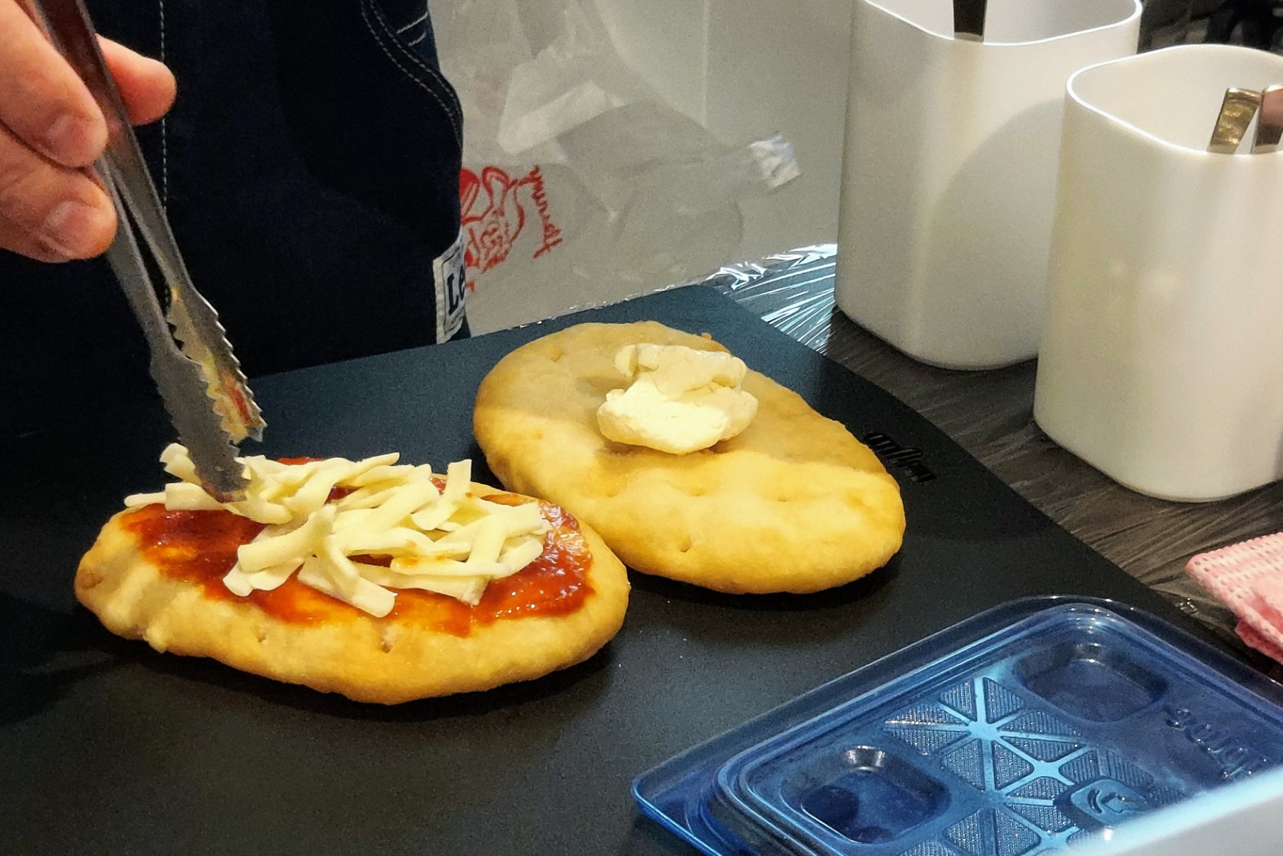 という調理工程を行い、揚げて焼くことで油っこくなく低カロリーな「あげ焼きパン」ができるそうです。