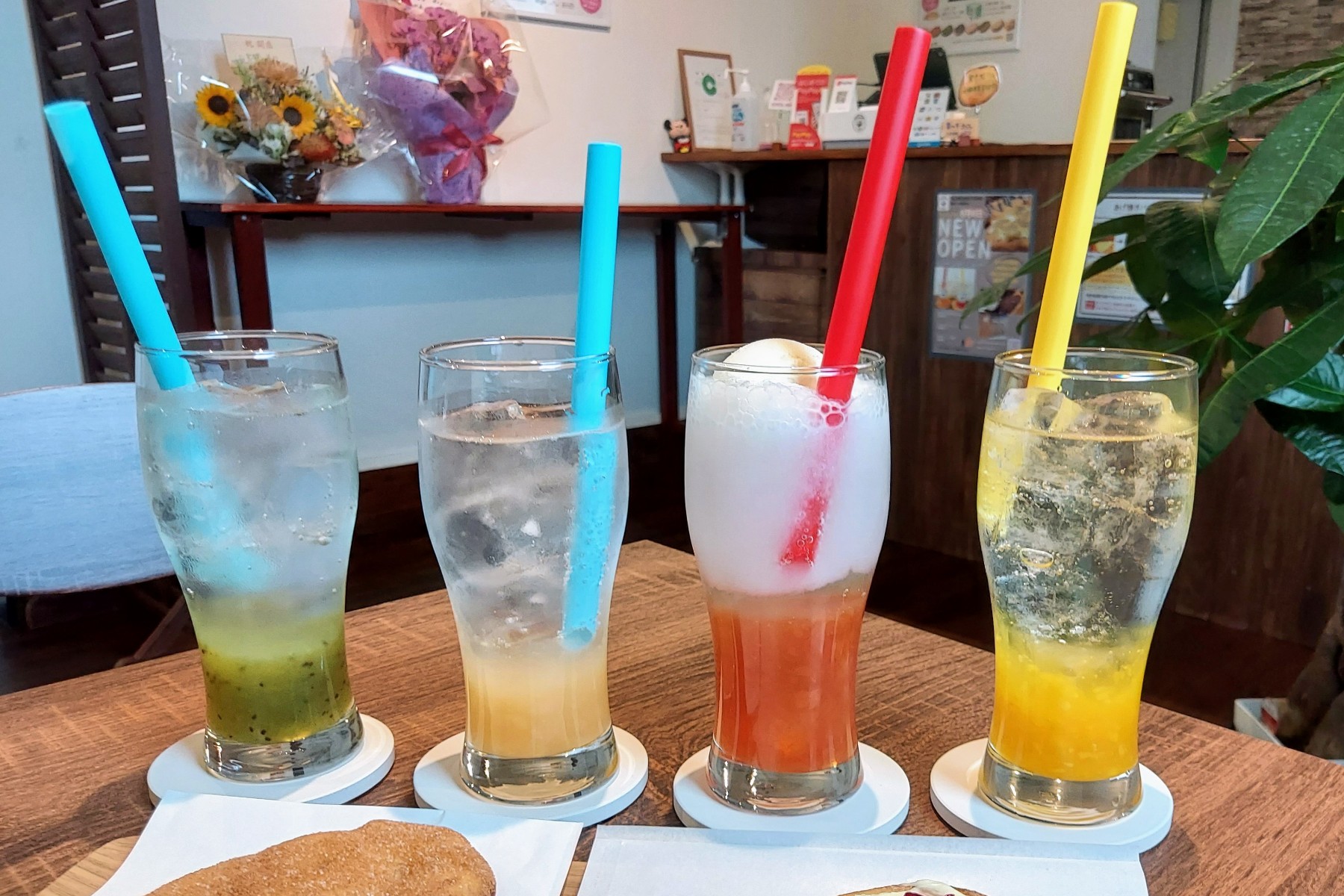 ・果実ソーダ(レッドグレープフルーツ)にアイスをトッピング 500円