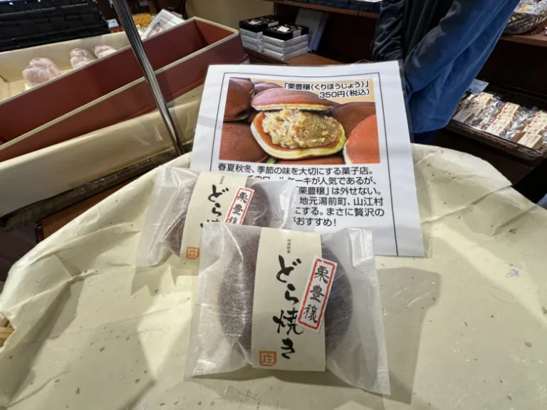 夾著大量當地奧球磨栗子的銅鑼燒「栗豐穰」價格350日圓。